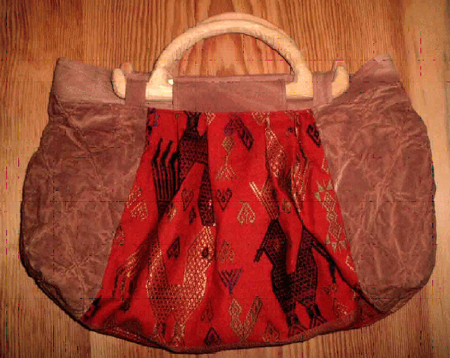 | バッグフレームA の製作例(ラオス手織りの布を使っています |
